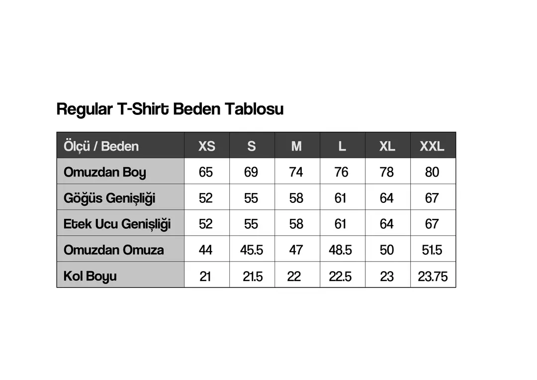 Yüksek kaliteli %100 pamuk dokusunun doğal yapısı, bu t-shirt’te modern baskı işçiliğiyle bir araya geliyor. Unisex kesimi sayesinde her bedende kusursuz bir döküm sergilerken, tamamen pamuklu içeriği vücudunuzun nefes almasını sağlar, ısıyı dengeler ve terletmeden konfor sunar. Dayanıklı ve doğal yapısıyla uzun yolculukların ve hareketli günlerin en güvenilir eşlikçisidir.